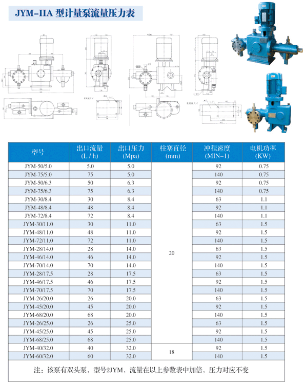 計(jì)量泵 >> JYM-ⅡA型計(jì)量泵 最大流量為140L/H,最高耐壓32Mpa