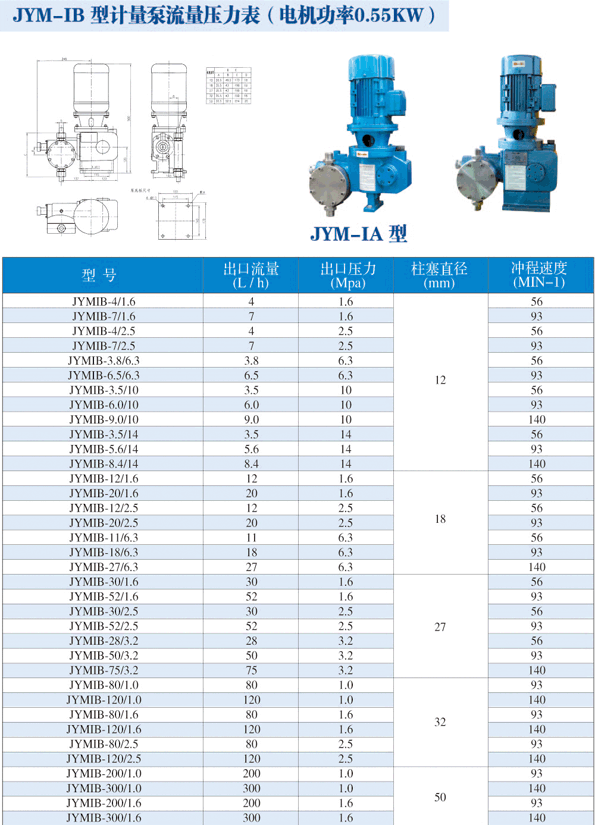 計(jì)量泵 >> JYM-ⅠB型液壓隔膜計(jì)量泵 最大流量為300 L/H, 最高耐壓14Mpa