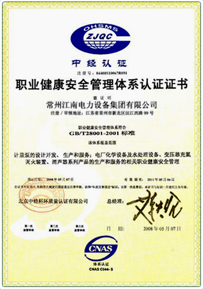 中經(jīng)職業(yè)健康安全管理體系認證證書