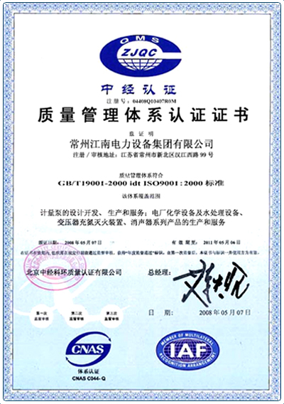 中經(jīng)質(zhì)量管理體系認證證書